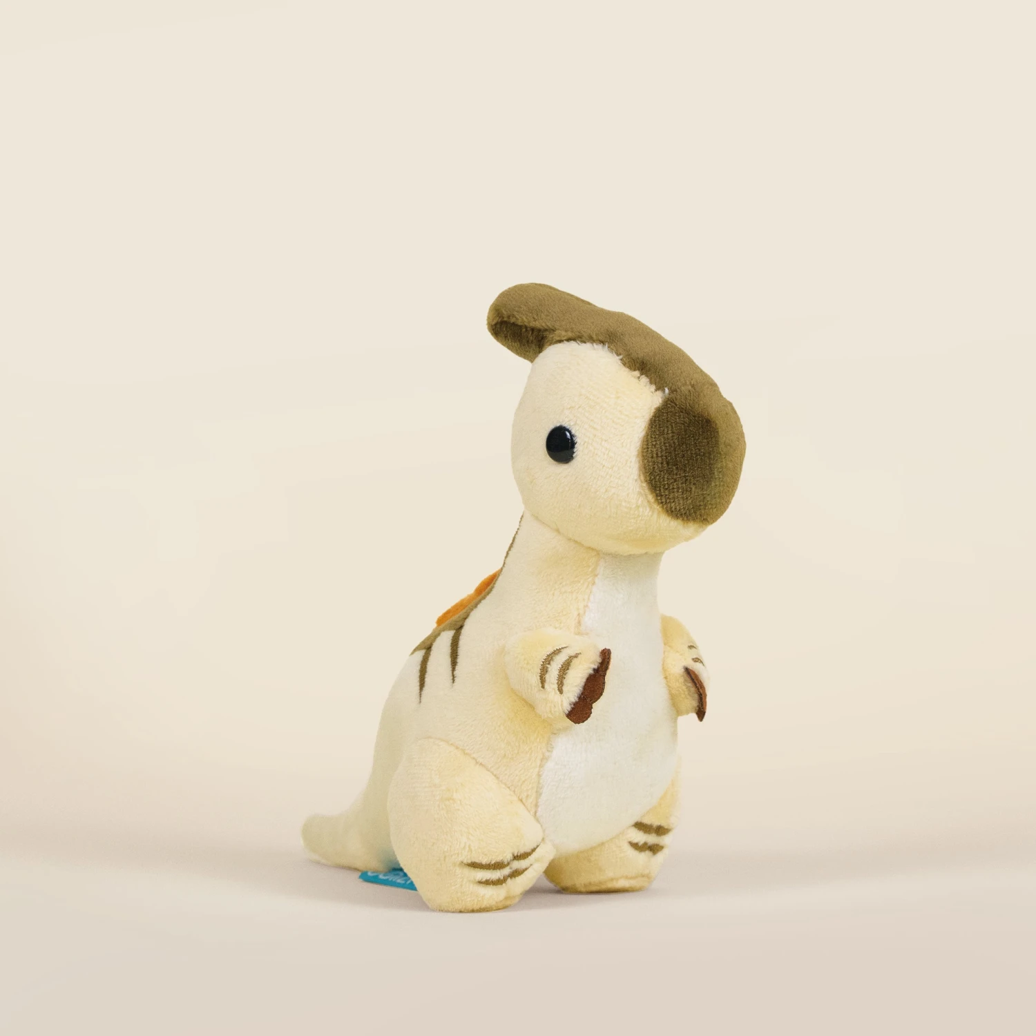 Introducing Mini Parasauri the Parasaurolophus, your pint-sized partner for dino-sized fun! This whimsical miniature dino plush features a tan beige color adorned with adorable brown accents on its nose, head, hands, and back, capturing the essence of the ancient Parasaurolophus in a compact form. Adding a touch of prehistoric charm, Mini Parasauri proudly displays a tiny yet vibrant orange stripe, making it a standout in the mini plushie world. With its lifelike details and irresistibly soft texture, this mini parasaurolophus plushie is sure to delight dino enthusiasts of all ages.