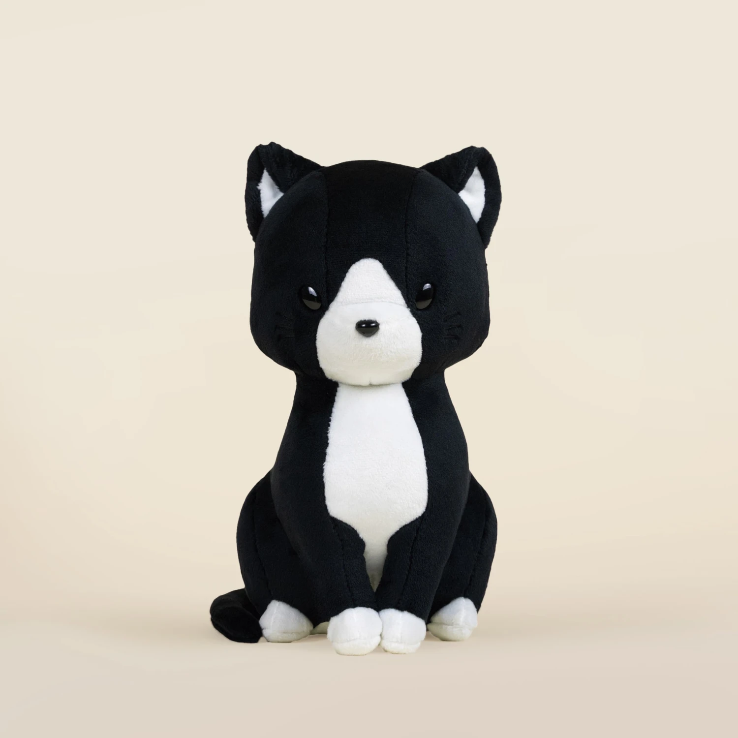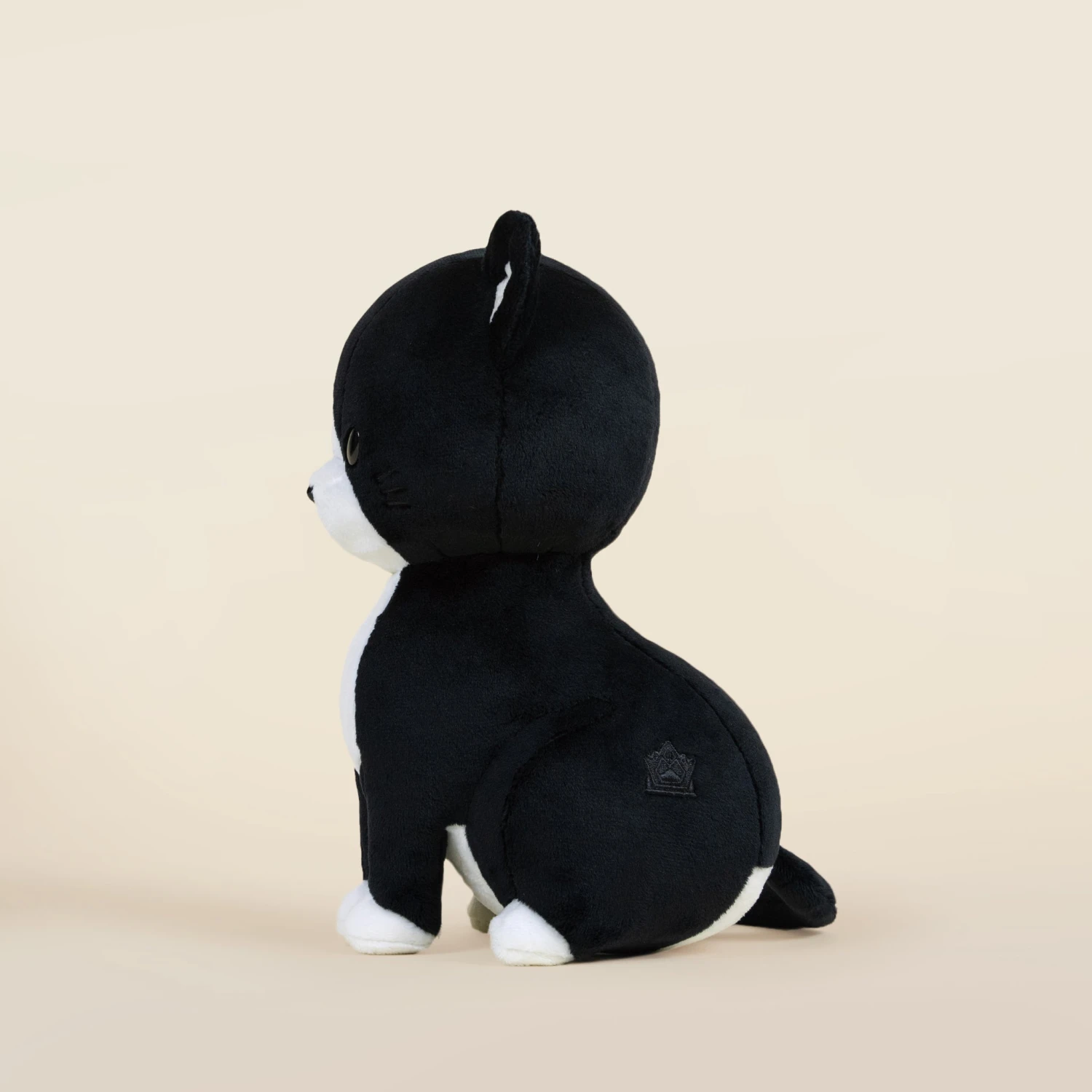 Tuxi’s gentle expression and plush softness make it an irresistible friend for cat lovers and plush collectors alike. Whether lounging on your bed or perched on a shelf, Tuxi adds a touch of class and coziness to any space.